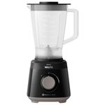 A Philips Walita desenvolveu uma tecnologia exclusiva para a linha de liquidificadores a Tecnologia Problend 4, a combinação de lâminas de quatro pontas com design inovador, que ajudam a misturar e triturar os ingredientes, ideal para de molhos, sopas, caldos, panquecas, pudins, vitaminas e muito mais. São duas velocidades, Função Pulsar e 550W de potência, que garantem ótimo resultado para diferentes tipos de receitas. Com a Função Crush, que tritura gelo, perfeito para drinks e smoothies feitos com seus ingredientes preferidos. A abertura exclusiva da tampa é indicada para adicionar ingredientes, como óleo, e aos poucos fazer a maionese perfeita com a Função Maionese. Saia da rotina e crie novas receitas com a praticidade do Liquidificador Philips Walita Daily RI2110.