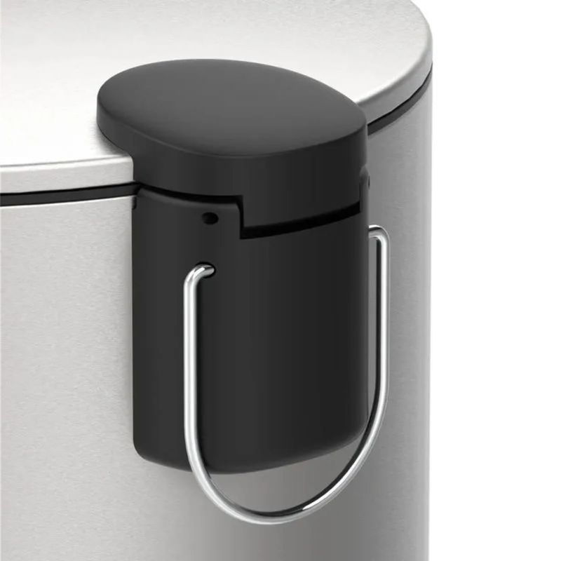 A lixeira Spin vem com balde removível para colocar o saco de lixo, facilitando a remoção na hora do descarte. A tampa tem fechamento suave. O sistema de acionamento é por meio de pedal, possui alça para transporte e a superfície da Lixeira Spin possui tratamento antidigital.