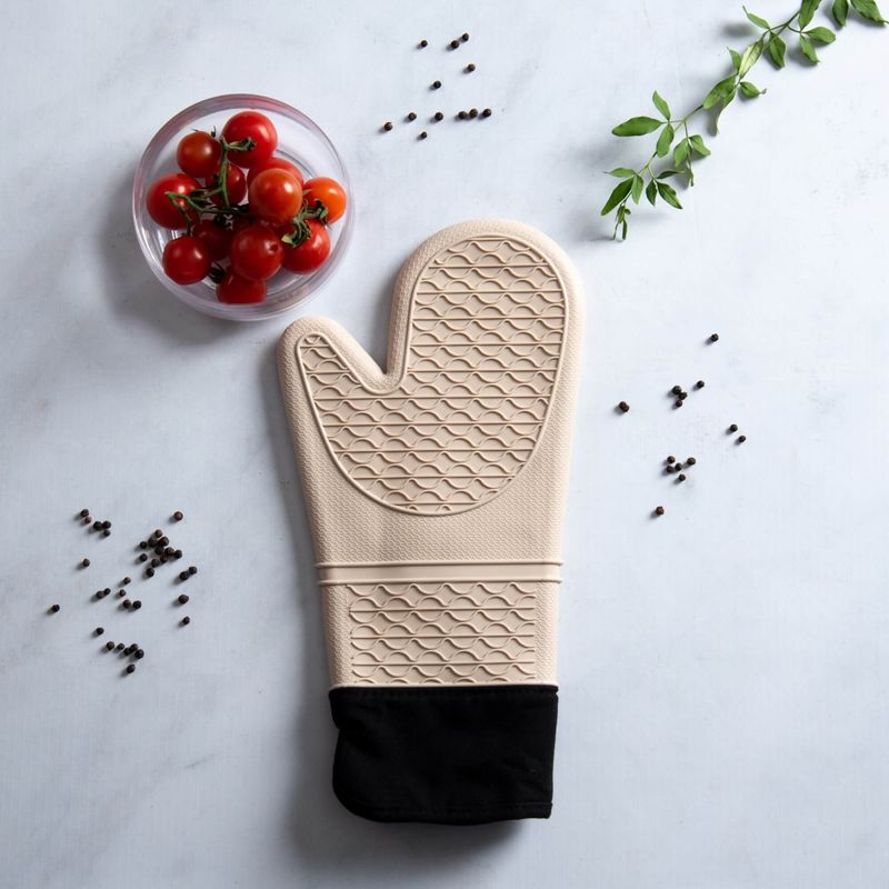 Existem luvas feitas de silicone e de algodão, mas as luvas de silicone têm se tornado populares, pelo fato do silicone ter grande resistência a temperatura, o que faz delas algo muito útil e seguro na cozinha.
