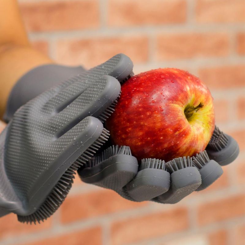 A luva Prana se difere das outras pois é a que tem mais espessura de silicone e nas cerdas, proporcionando mais tempo de uso sem rasgar.