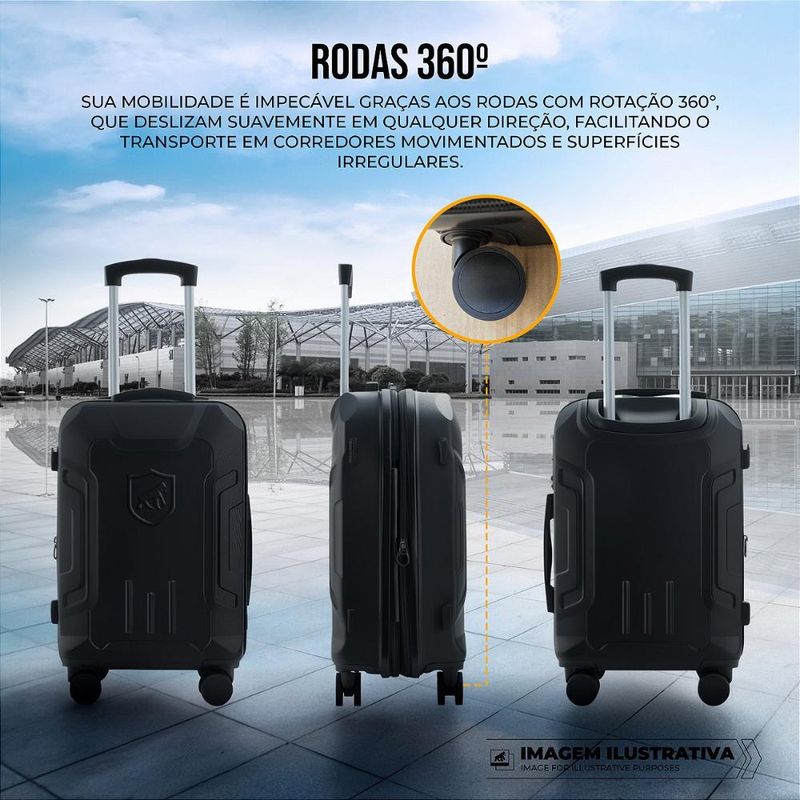 Tipo: Padrão ANAC - Mala compatível com compartimento interno de bordo doméstico e internacional.