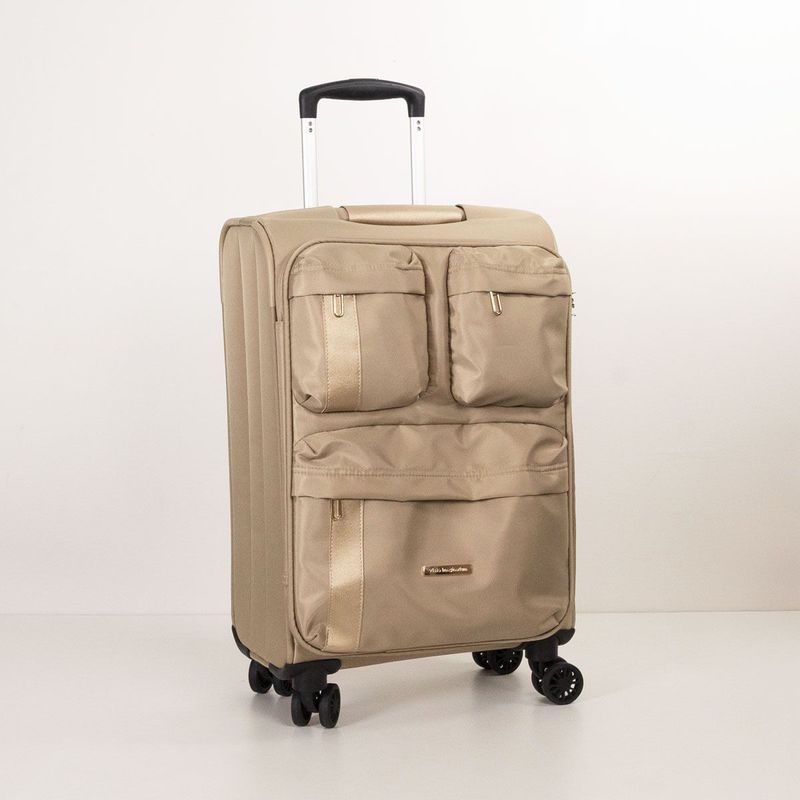 Super estilosa e trazendo bolsos cheios de praticidade, nossa Mala de Viagem Bolsos Clara e Dourada chegou para ser a sua melhor companhia durante as suas viagens!