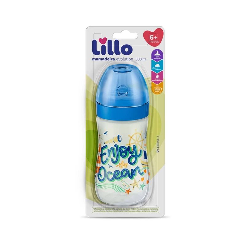 Mamadeira Super Evolution Divertida 6m+ 300ml Azul - Lillo