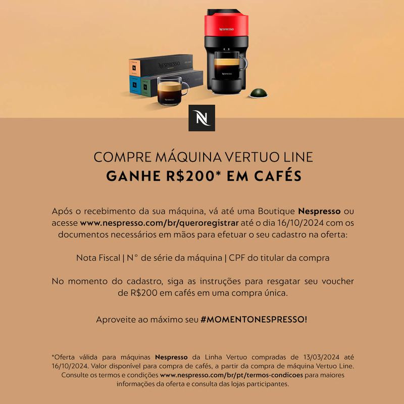 O sistema Vertuo Next leva toda a gama de estilos de café Nespresso ainda mais longe. Se você quer uma xícara de café pela manhã, um espresso depois do almoço ou um Gran Lungo à tarde, a nova Máquina do Sistema Vertuo cuida disso para você. Levando sua experiência de café a outro patamar, essa máquina abrange toda a gama de estilos com até quatro medidas de xícaras, tudo a um único toque de um botão. Com um novo sistema de extração por infusão e centrifugação, chamada de tecnologia Centrifusion , a Vertuo Next lê o código de barras integrado em cada cápsula para extrair exatamente a medida ideal daquele café. A cápsula se ajusta e gira em uma velocidade muito alta em um método único para extrair os tesouros escondidos em cada cápsula. Com a Vertuo Next, essa extração em 2 fases (infusão + centrifugação) permite à Nespresso modular a temperatura e quantidade de água ideal para produzir um crema que é a marca registrada da Nespresso e trazer um resultado extraordinário, independente da medida da sua xícara. Essa máquina possui detalhes cromados que se adaptam a qualquer ambiente e pensando em seu propósito sustentável, ela foi produzida com 54% de plástico reciclado. Para ir mais longe, a máquina possui conectividade via Wi Fi e Bluetooth para atualizar seu software e oferecer a você uma experiência contínua.