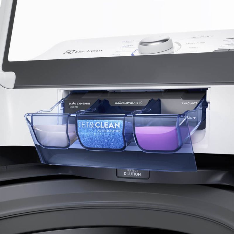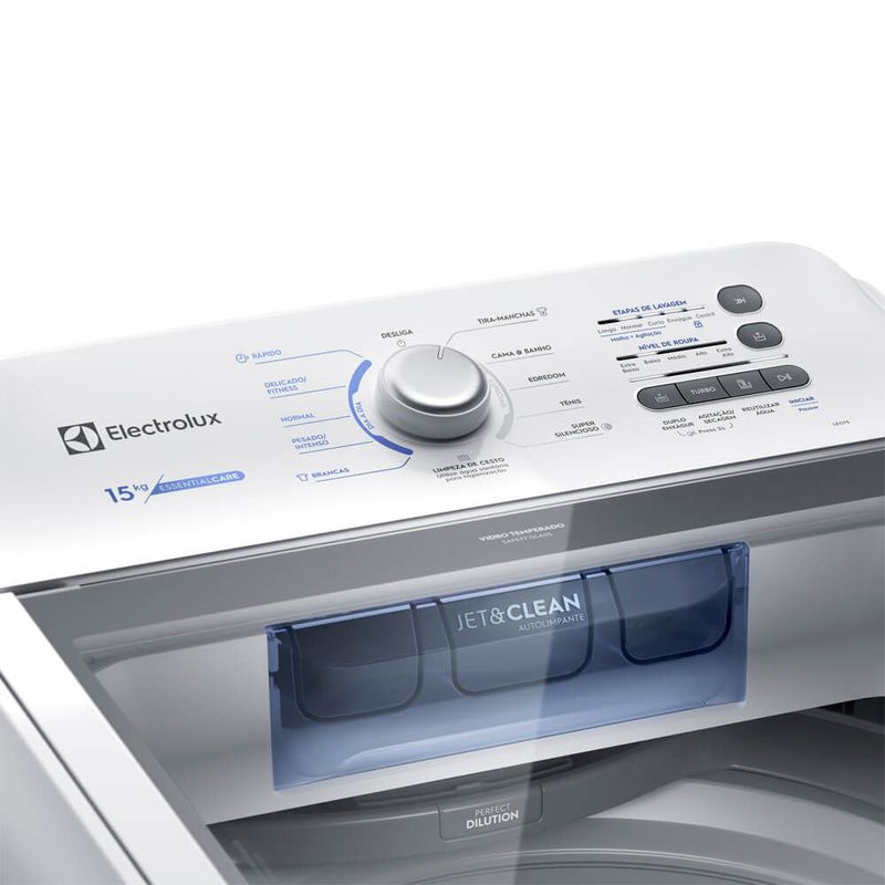 Tecnologias da Máquina de Lavar 15 kg A máquina de lavar roupa de 15 kg da Electrolux cuida das suas peças a partir de tecnologias como:Jet&Clean: usa fortes jatos de água para que o dispenser de sabão e amaciante esteja sempre limpo. Os jatos diluem 100% dos produtos, o que contribui para a limpeza, evita manchas e a necessidade de relavagens; Ciclos rápidos: otimizam o tempo dos programas automaticamente para deixá-los mais rápidos quando necessário, com mais cuidado e menos desgaste nas peças; Ultra Filter: sistema de filtragem de fiapos com capacidade de retenção 8 vezes maior, para você não se preocupar com fiapos e sujeiras presos às roupas após a lavagem; Função Reutilização de Água: permite reaproveitar a água da lavagem para outras tarefas, como lavar o chão.