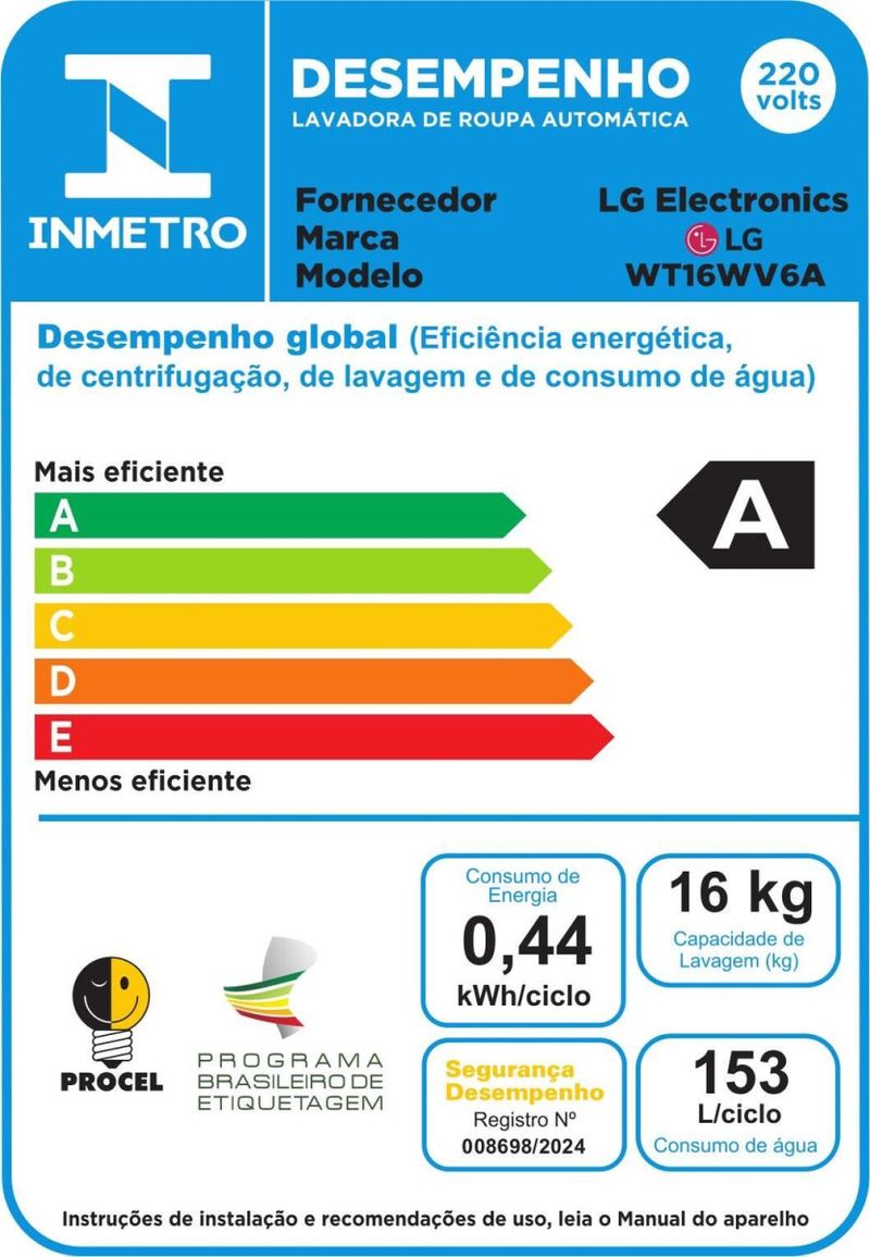 Máquina de Lavar LG 16Kg Branca com Inteligência Artificial AIDD que analisa a textura do tecido dentro do cesto e garante uma lavagem mais eficiente e maior preservação dos tecidos. Possui conectividade com aplicativo LG ThinQ que proporciona monitoramento remoto da sua maquina, podendo alterar ciclos ou adicionar funções extras, oferece também download de ciclos adicionais. Conte também com a tecnologia exclusiva LG Scent+ que potencializa a ação do amaciante, proporcionando roupas mais macias e com perfume mais intenso e duradouro. A lavadora de roupas LG WT16WV6 Branca, levará evolução para a sua lavanderia com Inteligência Artificial que preserva suas roupas. Ela possui motor Inverter Direct Drive, capacidade de lavagem de 16kg, lave mais roupas em uma única lavagem com uma lavadora que maximiza seu espaço interno, cesto em Inox e trabalha com água fria. Ela oferece diversos recursos que aliam a tecnologia à sua rotina de lavar as roupas. Inteligência Artficial AIDD: Cuidados inteligentes com 24% mais proteção, otimizando o movimento conforme o peso e o tipo de tecido. O Agitador DualHelix oferece uma lavagem profunda e eficiente com o agitador DualHelix e sistema DirectDrive, garantindo proteção e limpeza das suas roupas. O TurboDrum permite uma lavagem mais potente e remove a sujeira mais difícil através de um forte fluxo de água combinado com tambor e agitador girando em direções opostas. Um filtro de fiapos maior mantém suas roupas e o tambor mais limpos, já que poeira e sujeira são removidas das suas roupas. A porta de viro com fechamento suave e automático ajuda a evitar acidentes e garantir a segurança durante a a lavagem. Conecte e controle de qualquer lugar com o aplicativo LG ThinQ, que permite iniciar sua lavadora com apenas um toque, de qualquer lugar. True Balance: Amortecedores e um sensor absorvem as vibrações durante a lavagem, proporcionando um funcionamento mais silencioso. E com Scent+, sua roupa ficará com um aroma mais fresco e duradouro quando o amaciante penetrar profundamente nos tecidos durante o ciclo de lavagem.