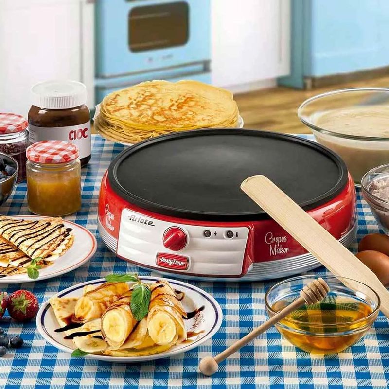 A Máquina para Crepes Ariete 202 Retrô Party Time traz o charme dos diners americanos dos anos 1950 para a sua cozinha. Com um design icônico e funcionalidade prática, esta máquina é perfeita para preparar crepes doces e salgados, panquecas e wraps de maneira rápida e fácil.