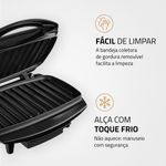 2 EM 1: Versátil, o Max Grill funciona como grill e sanduicheira. Você pode preparar carnes, peixes, vegetais, pães, hambúrguer, entre outros.