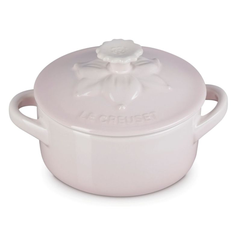 MINI COCOTTE LE CREUSET JARDIN 250ML 10CM EM CERAMICA COM RELEVO SHELL PINK 80043257770003