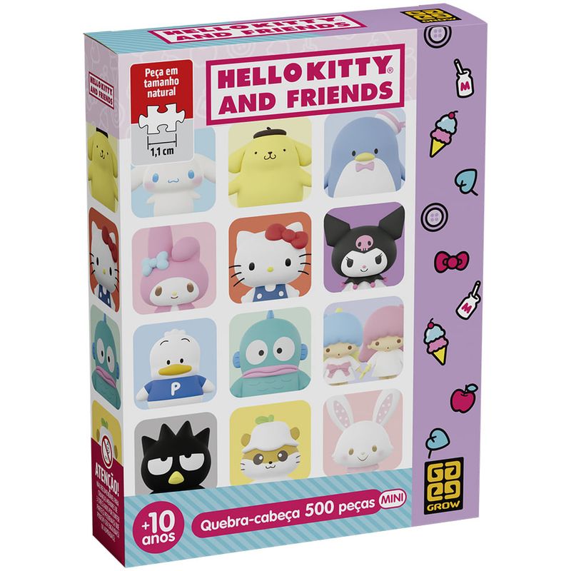 Prepare-se para montar um dos quebra-cabeças mais encantadores da Grow! O Mini Quebra-Cabeça Hello Kitty and Friends traz toda a doçura dos personagens mais amados da Sanrio em uma composição moderna, colorida e perfeita para decorar seu espaço após a montagem.