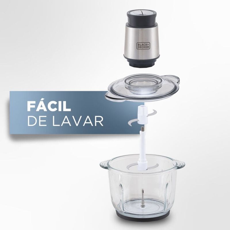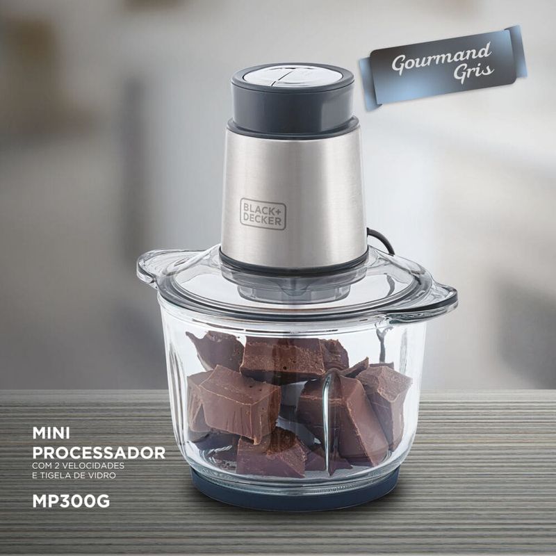 Miniprocessador de Alimentos Black Decker MP300G Antiaderente em Inox, Modo de 2 ou 4 Lâminas com 2 Velocidades - 300W