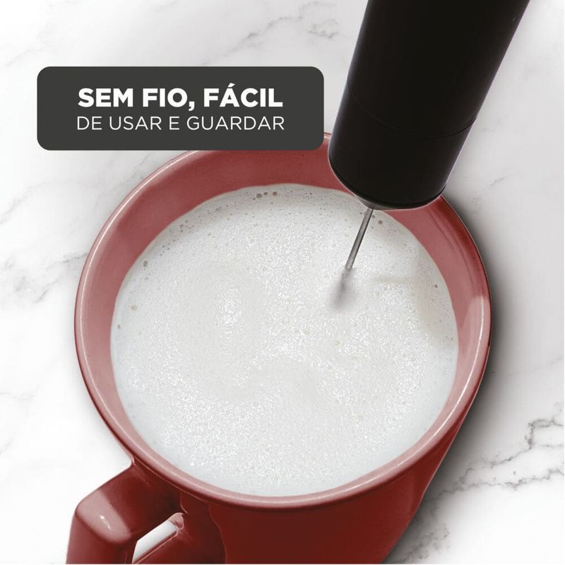 Portabilidade que dá gosto Este mixer é o companheiro perfeito para suas aventuras culinárias. Leve e sem fio, permite que você o leve para onde quiser, praticidade e liberdade unidos para deixar suas bebidas cremosas e perfeitas sempre! Conveniência Sem Fio Fácil de usar. Sem a necessidade de fios, você pode utilizá-lo em qualquer lugar. ele utiliza duas pilhas AAA. Durabilidade e Facilidade na hora de limpar Equipado com uma haste removível em aço inoxidável, além de resistente, facilita a higienização, garantindo que você possa desfrutar do seu mixer por muito tempo. Prepare Bebidas Deliciosas Este mixer não apenas mistura, mas também cria espuma em leite, capuccinos, chocolates quentes e muito mais. Além disso, é perfeito para preparar molhos, expandindo suas possibilidades na cozinha.