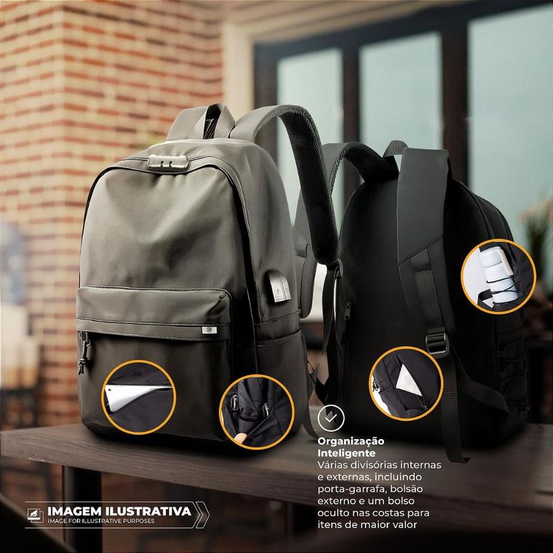 A segurança é o destaque da Mochila Flex, tornando-a a escolha ideal para quem busca proteção no dia a dia. O compartimento principal vem equipado com um cadeado externo integrado, codificado por senha, oferecendo uma barreira extra de proteção para seus itens pessoais. Essa funcionalidade é perfeita para quem transporta objetos de valor, como notebooks, tablets e documentos.