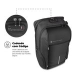ATENÇÃO: Em um bolso interno, atrás das entradas de acesso P2 e USB, há um cabo P2 para conectar ao celular e um cabo USB para conectar ao carregador portátil. Não acompanha chave - cadeado codificado por senha.