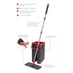 Sistema de Torção: A torção do mop permite extrair o excesso de água com facilidade, facilitando a secagem rápida do piso e evitando o acúmulo de água no chão