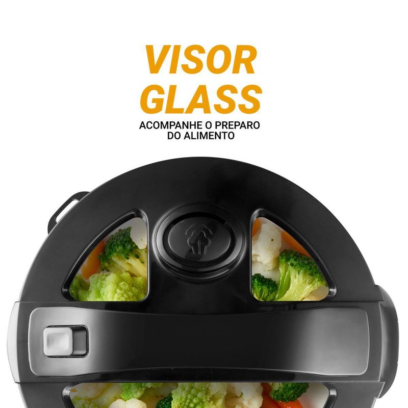 A tampa com Visor Glass permite acompanhar o preparo sem precisar abrir, preservando o vapor e o sabor dos alimentos. Além disso, a Panela de Arroz PPA06A possui vedação segura com botão de travamento e saída de vapor, garantindo mais segurança no uso. O cordão elétrico removível possibilita levar a panela diretamente à mesa, adicionando praticidade e conveniência à sua rotina.