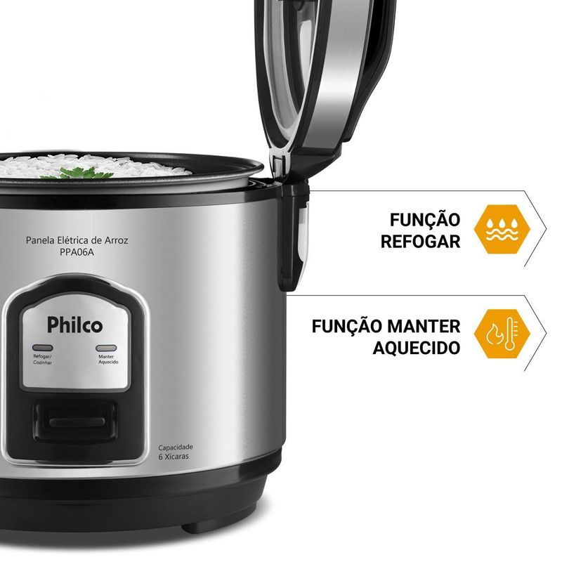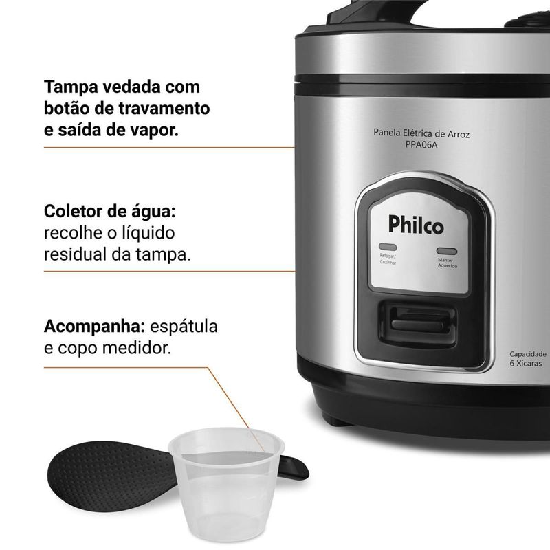 Invista na Panela de Arroz Elétrica Philco PPA06A e traga mais conforto, sabor e organização para sua cozinha. Uma aliada perfeita para preparar arroz, legumes e muito mais com agilidade e estilo.