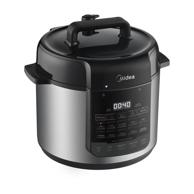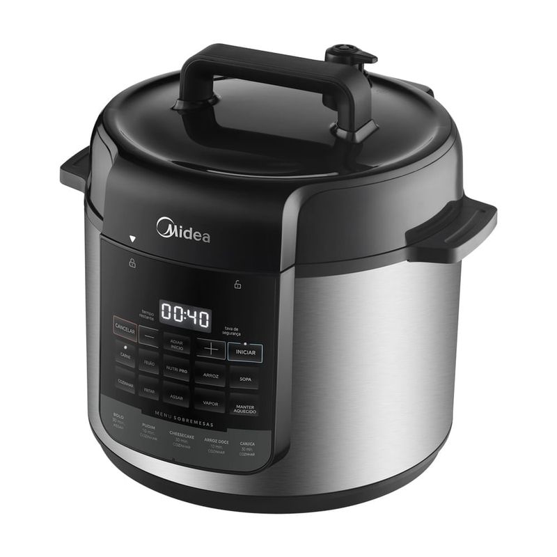 A Panela de Pressão Elétrica 5L Nutri-pro Inox Midea leva mais praticidade e agilidade no preparo das suas receitas. Sua função Nutri-pro regula o vapor automaticamente, preserva assim os nutrientes e auxilia na liberação de sabores, enquanto a função Vapor é ideal para preparar receitas saudáveis. Sua função Manter Aquecido mantém a refeição na temperatura perfeita após o preparo, e o revestimento antiaderente Blackstone impede que a comida grude, facilitando a limpeza. Além disso, os 9 dispositivos de segurança e o desligamento automático permitem que você cozinhe sem preocupação. ATENÇÃO: ESTA LOJA NÃO FATURA PARA CNPJ.