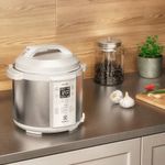É saudável cozinhar na panela de pressão elétrica? As tecnologias programáveis da panela de pressão elétrica permitem que as receitas sejam cozidas no tempo adequado, sem a necessidade de óleo. O controle de temperatura e eficiência da Panela de Pressão Elétrica 6 Litros Electrolux oferecem cozimento rápido, reduzindo a quantidade de água necessária e proporcionando refeições nutritivas.