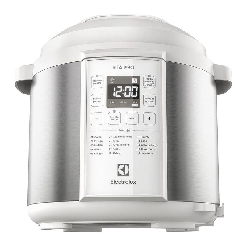 Diferenciais da Panela de Pressão Elétrica 6 Litros Electrolux Os principais diferenciais da Panela de Pressão Elétrica 6 Litros, que proporcionam maior eficiência para sua cozinha, são: 15 receitas pré-programadas no menu: explore receitas como milho, frango, polenta, entre outras com apenas um toque no display LED; Seleção manual: a pressão e o tempo de cozimento também podem ser ajustados conforme a sua necessidade; Dispositivos de segurança: 10 mecanismos de proteção que oferecem mais tranquilidade durante o preparo de alimentos; Alta capacidade interna: com 6 litros, a panela interna permite o preparo de grandes porções;Fácil de limpar: a panela antiaderente e o acabamento em aço inox escovado impede o acúmulo de sujeira e a absorção de manchas; Cabo elétrico removível: facilita o transporte da panela da cozinha para a mesa.
