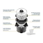 Além disso, o recipiente removível com revestimento Dura Mais é mais resistente e fácil de limpar, facilitando a sua rotina na cozinha. Com a bandeja de alumínio com alças, você pode preparar alimentos no vapor, adicionando ainda mais saúde e sabor às suas refeições.