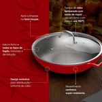 A panela Wok possui revestimento cerâmico super-resistente, que prolonga sua durabilidade. A tampa, com saída de vapor, permite que você cozinhe com mais controle, e pode ser usada no forno até 150°C. Esta panela versátil é compatível com todos os tipos de fogão, incluindo o de indução, e pode ser limpa na lava-louças.