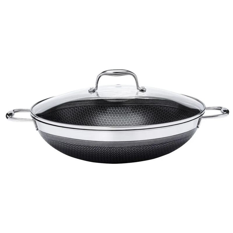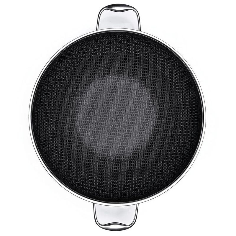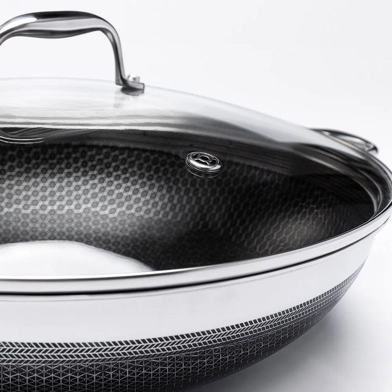 Prepare refeições incríveis com a Panela Wok CookingPro Hive, um utensílio de alta performance que une tecnologia e design para sua cozinha. Sua estrutura tripla garante um aquecimento rápido e uniforme, enquanto a inovadora tecnologia de micromalha em formato de colmeia 100% em aço inox protege o revestimento antiaderente, tornando-a antirrisco. Essa combinação permite o uso de menos óleo e garante maior controle de temperatura, facilitando o preparo e a limpeza.