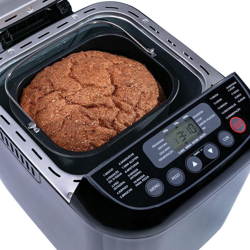 Possui 19 Funções Pré-programadas: Macio / Francês ou D’Água / Pão Integral, Pão Rápido / Brioche / Sanduiche / Sem Glúten / Misturar / Massa Integral / Massa de Pizza / Massa / Sovar / Mingau / Descongelar / Fermentar / Misturar e Assar / Geleia / Bolo / Assar.