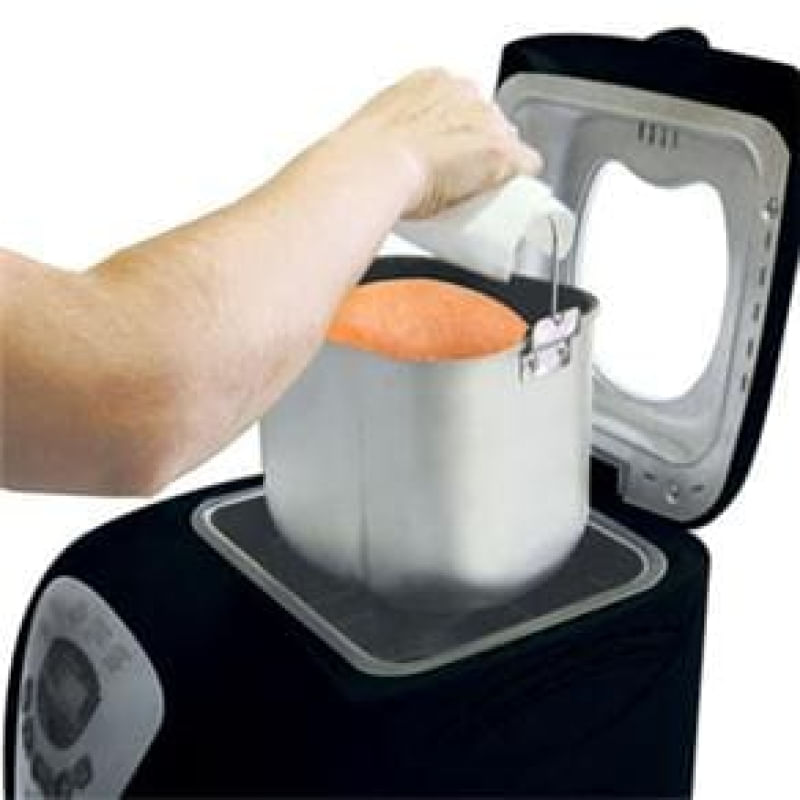 Pão fresquinho todos os dias, sem por a mão na massa! Com esta máquina de fazer pão vai ficar fácil: basta colocar os ingredientes e programá-la para uma das 12 opções que ela oferece, inclusive para fazer bolos e geléias. Ela bate a massa, descansa e assa. Você ainda pode acompanhar o processo de preparo por uma janela de vidro e manter o pão aquecido até 1 hora após estar pronto.
