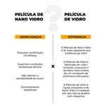 A Película de Nano Vidro é fabricada por um composto de polímeros reforçados. Ela é extremamente semelhante ao material da película de vidro, entretanto possui uma resistência 3x maior. Além disso, o acessório não se quebra ou se parte com os impactos. Todas as películas para celular da Gorila Shield possuem Certificação US Military, que garante que seu equipamento suportará condições ambientais difíceis.