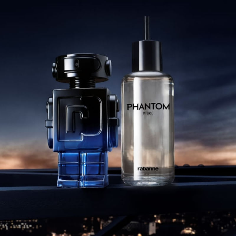A luz do dia se atenua. O céu torna-se azul. Deixe-se seduzir pelo irresistível chamado do crepúsculo com o novo PHANTOM Intense de Rabanne. Capturando a vibrante energia de Paris ao entardecer, PHANTOM Intense entra em um novo território para todos aqueles que se atrevem. Mais ousado e intenso, está impulsionado pelo seu lado mais audacioso. Uma excepcional mistura dos melhores ingredientes cria uma nova fronteira com uma fragrância aromática ambarina. A vívida lavanda se entrega a uma nova adição à baunilha e um toque gelado de flor de laranjeira para capturar a aura irresistivelmente enigmática que você tem dentro. Responda ao chamado da aventura. Siga a emoção crepuscular do PHANTOM.
