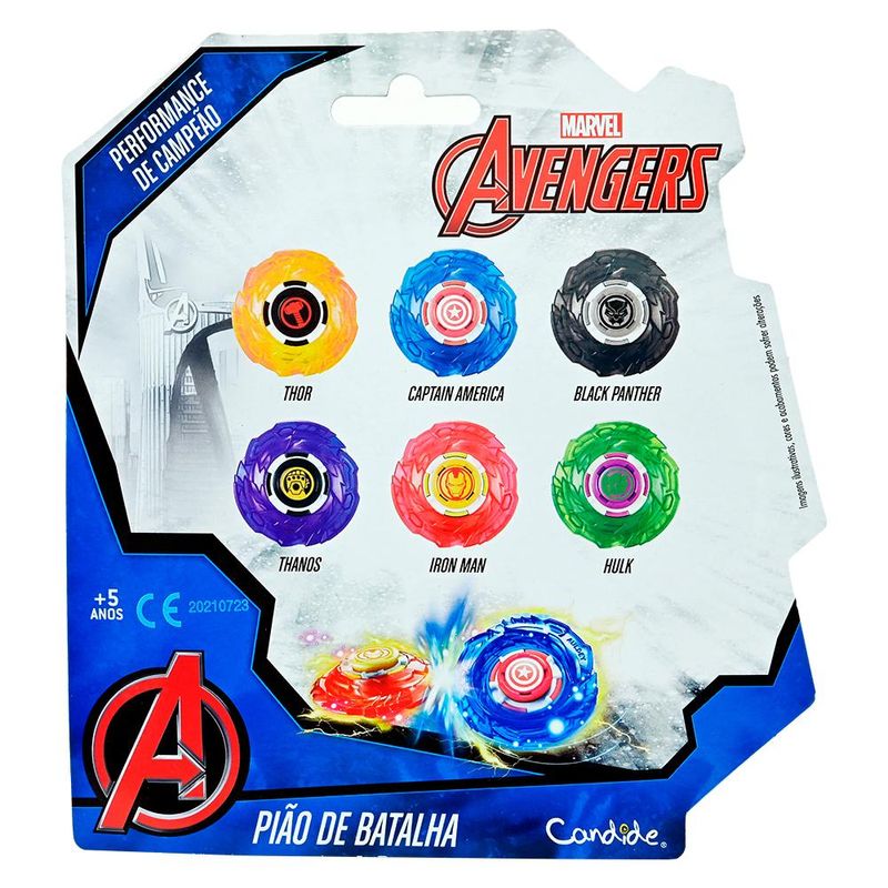 PIÃO INFINITY NADO - AVENGERS - Piões para combate com alta performance em 2 sortimentos com acabamento em plástico flexível. Acompanha ferramenta, corda e lançador.