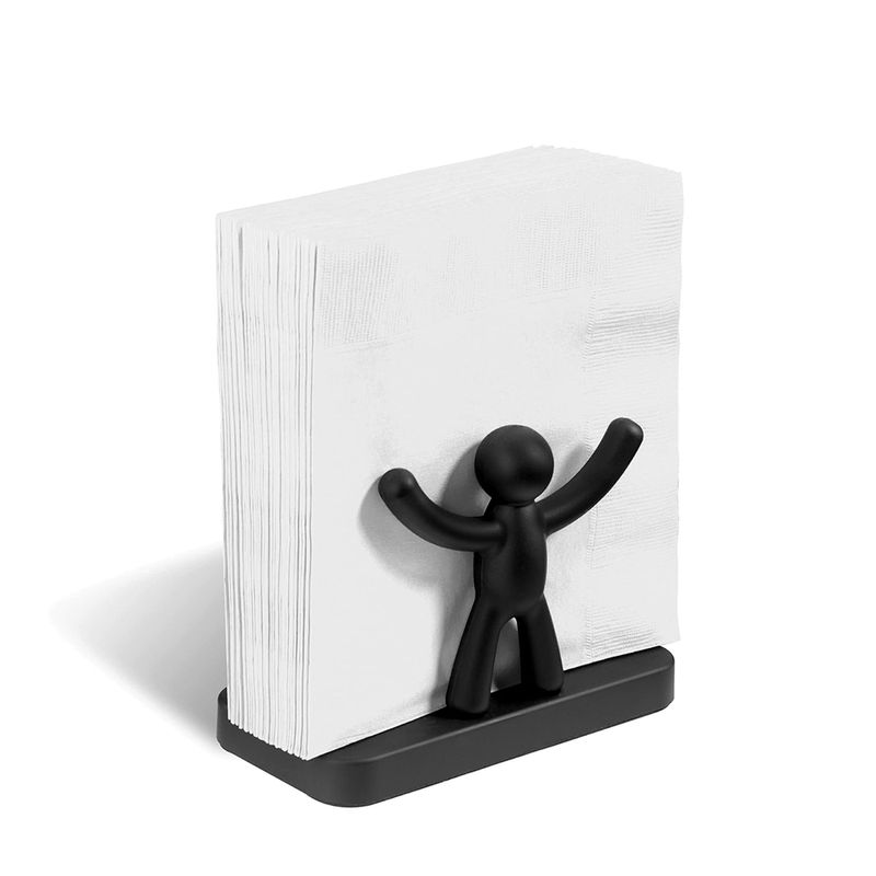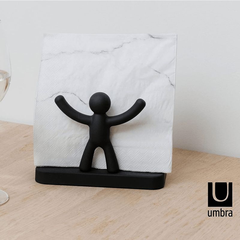 Porta guardanapo Buddy na cor preta da Umbra. O porta guardanapo Buddy traz personalidade para qualquer cozinha! É produzido em plástico de altíssima qualidade com design moderno e divertido. Perfeito para armazenar e levar à mesa seus guardanapos de forma sofisticada. Os dois Buddys se ajustam facilmente ao papel conforme for sendo utilizado. Coloque os Buddys com seus outros buddys na sua cozinha!