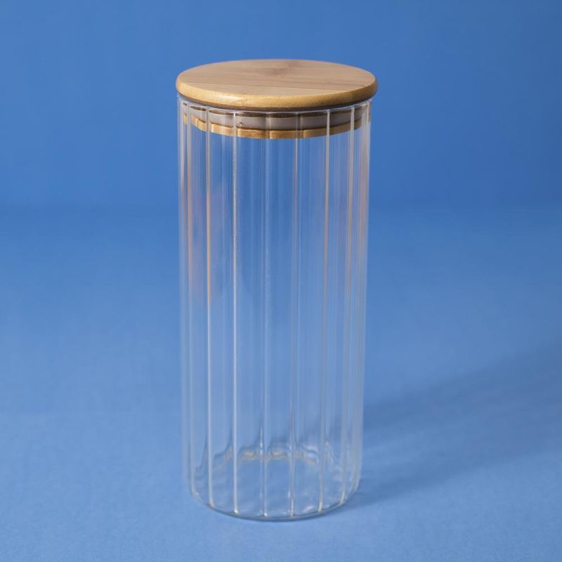 Pote de Vidro Canelado com Tampa de Bambu - Oikos