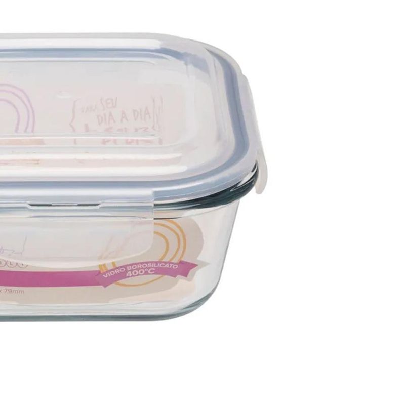 Sua versatilidade é um destaque: pode ser levado ao freezer, geladeira e lava-louças com a tampa. Sem a tampa, o pote suporta temperaturas de até 400°C, permitindo o uso em forno convencional e micro-ondas. A tampa de polipropileno com anel de silicone garante um fechamento hermético e é livre de BPA, oferecendo segurança para você e sua família.