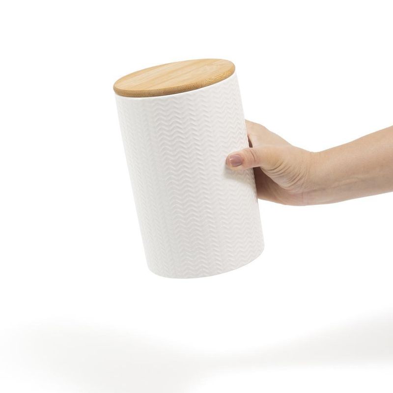 Descubra o Pote Zig Zag Dolomita com Tampa de Bambu Grande de 1,5L da Oikos, uma peça que une elegância e funcionalidade para a sua cozinha. Este encantador pote possui um design moderno em dolomita, ideal para armazenar alimentos de forma segura, enquanto adiciona um toque estiloso à sua decoração.