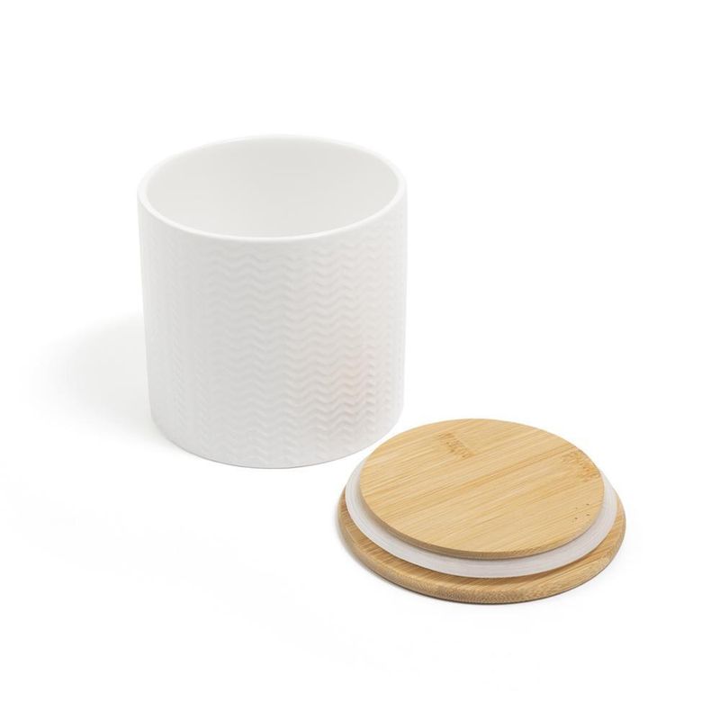 Pote Zig Zag Dolomita Com Tampa De Bambu Pequeno 900Ml