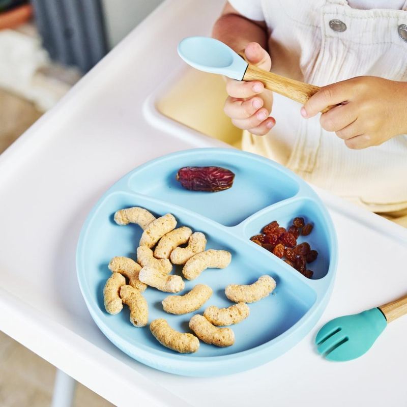 O Prato Infantil Portions da Minikoioi foi desenvolvido para facilitar a alimentação dos bebês a partir de 6 meses, incentivando a independência e promovendo porções equilibradas. Feito 100% em silicone de grau alimentício, é seguro, durável e possui ventosas de sucção, garantindo que o prato permaneça fixo na mesa.