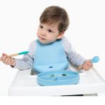 01 Prato Infantil de Silicone com Divisórias e Sucção Portions Mineral Blue - Minikoioi
