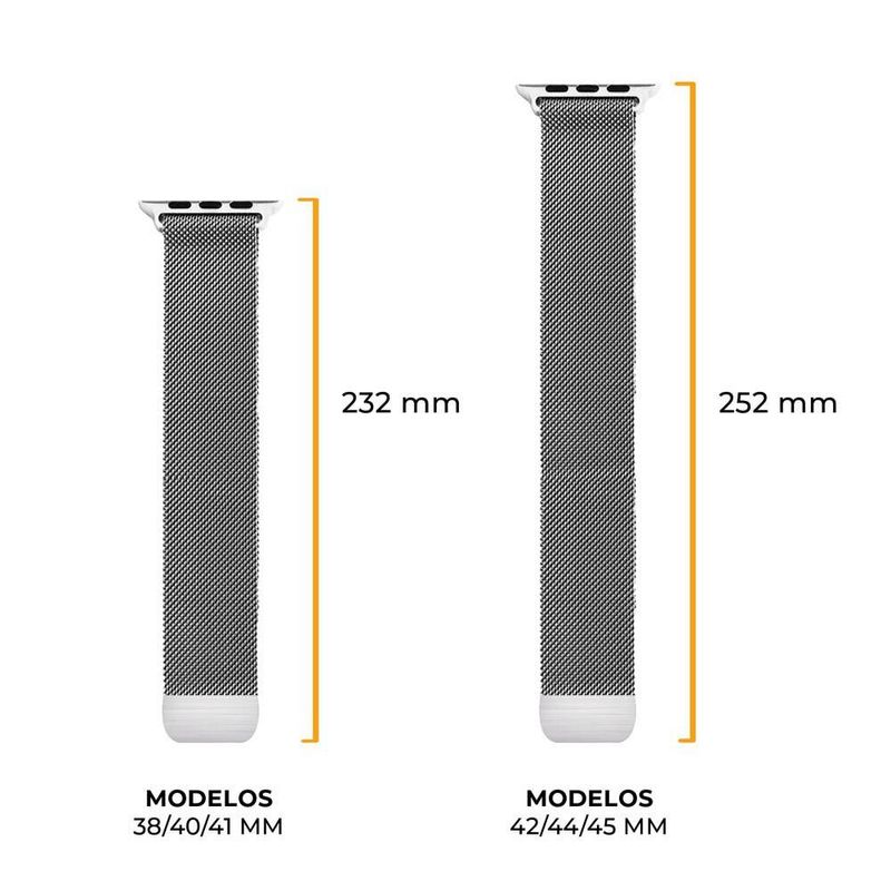 A Pulseira de Milanese para Apple Watch da Gshield, é moderna, flexível e confortável! Envolve o pulso de forma suave e se ajusta com perfeição.