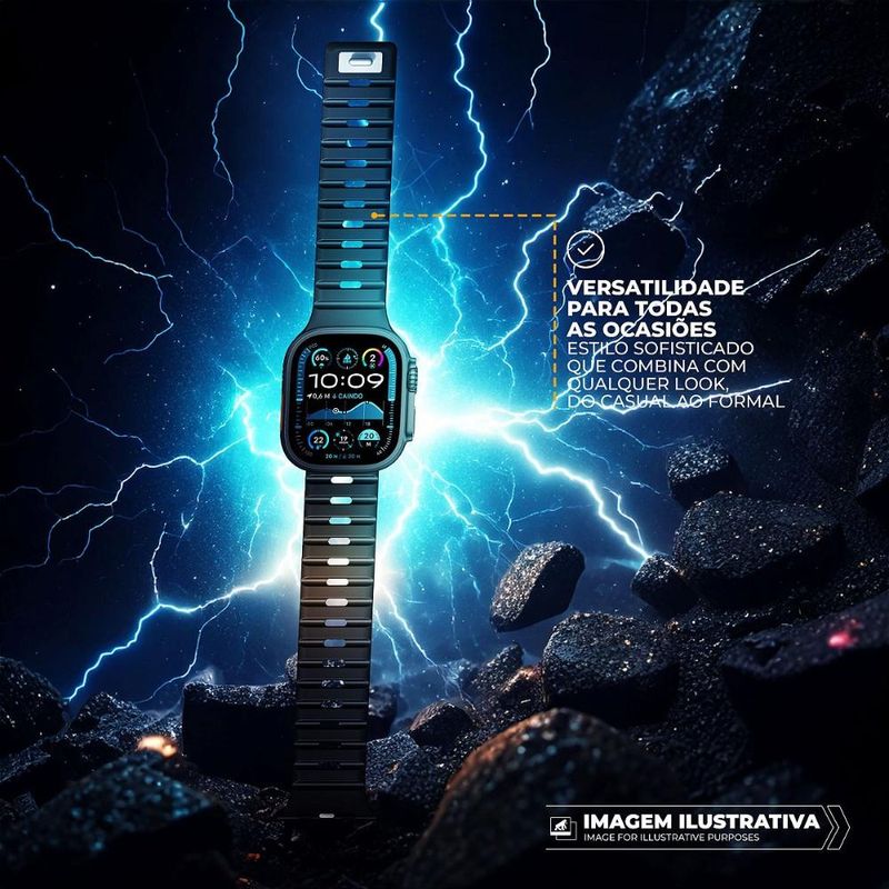 O grande diferencial da pulseira é o fecho magnético inteligente, que proporciona um ajuste milimétrico ao seu pulso. O sistema magnético foi cuidadosamente projetado para garantir segurança e praticidade: ele se ajusta automaticamente ao tamanho exato do seu pulso, mantendo o Apple Watch firme e seguro durante todas as suas atividades, desde o dia a dia agitado até a prática de exercícios físicos. A fixação magnética é suficientemente forte para garantir estabilidade, mas suave o bastante para permitir um ajuste fácil e rápido, sem a necessidade de fivelas ou presilhas tradicionais.