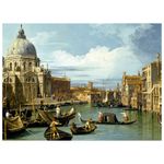 A imagem retrata a imponente Basílica de Santa Maria della Salute, as charmosas gôndolas e a atmosfera única da Veneza do século XVIII — tudo com a precisão e o realismo que tornaram Canaletto um nome eterno na história da arte.