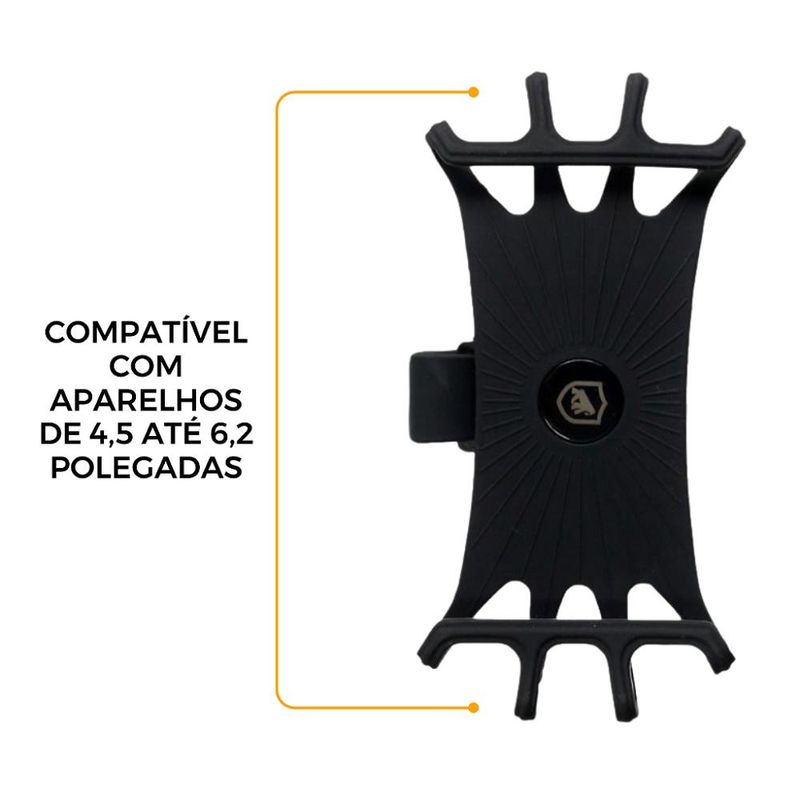 O Suporte Atomic é flexível e permite uma visualização limpa do aparelho, sem atrapalhar na pilotagem, além de lhe garantir segurança de que o celular não irá escapar do suporte devido ao elástico de alta qualidade pensados para suportar trepidações, altas velocidades e ter uma alta capacidade de retenção.