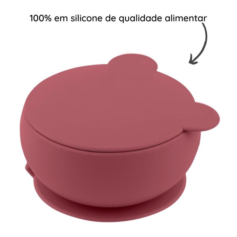 01 Tigela Urso de Silicone Bowly 450ml Velvet Rose - Minikoioi