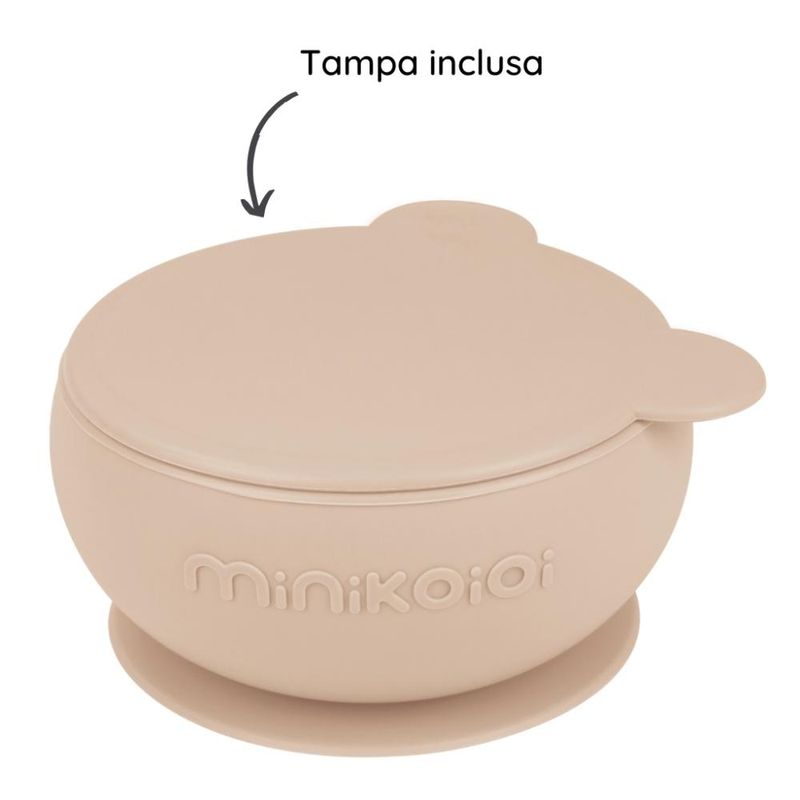 01 Tigela Urso de Silicone Bowly Bubble Beige - Minikoioi