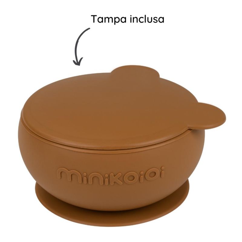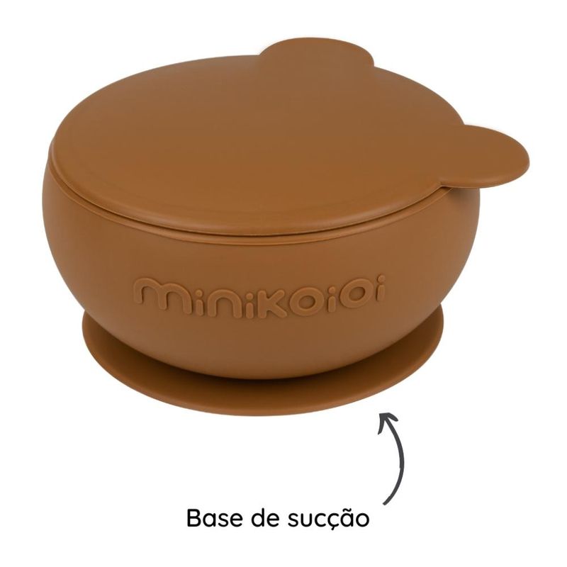 01 Tigela Urso de Silicone Bowly Woody Brown - Minikoioi