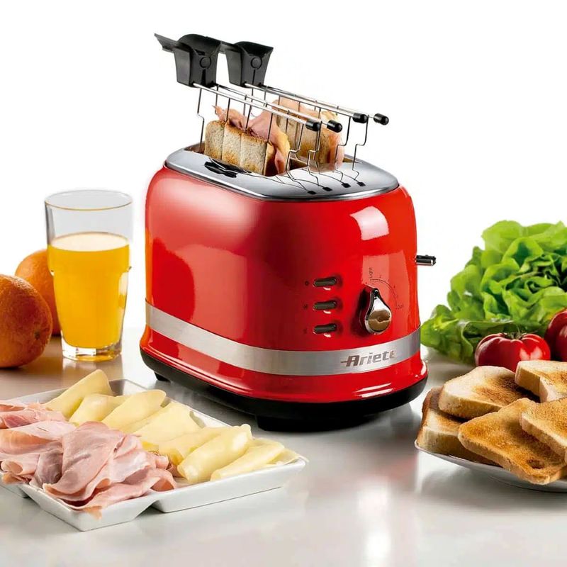 Torradeira de 2 fatias com pinça – Com a torradeira Moderna você pode torrar até 2 fatias de pão ou sanduíches ao mesmo tempo usando as pinças práticas fornecidas e sempre obtendo um resultado crocante e perfumado graças aos 6 níveis de tostagem.