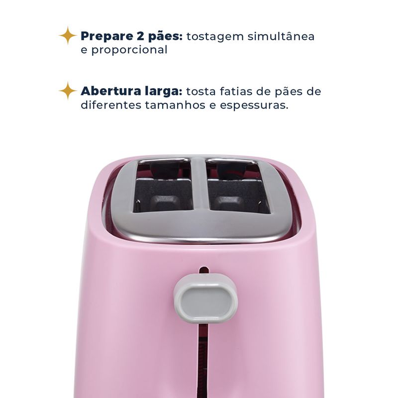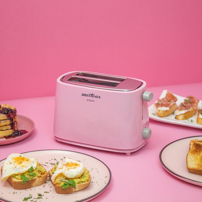 E não podemos esquecer do design com cor rosa, mais personalidade na sua cozinha com a Torradeira Rosa Britânia BTR04RS!