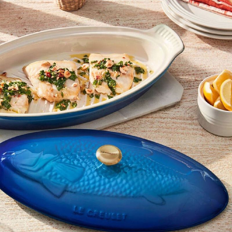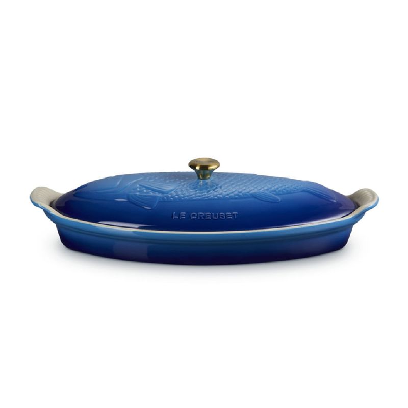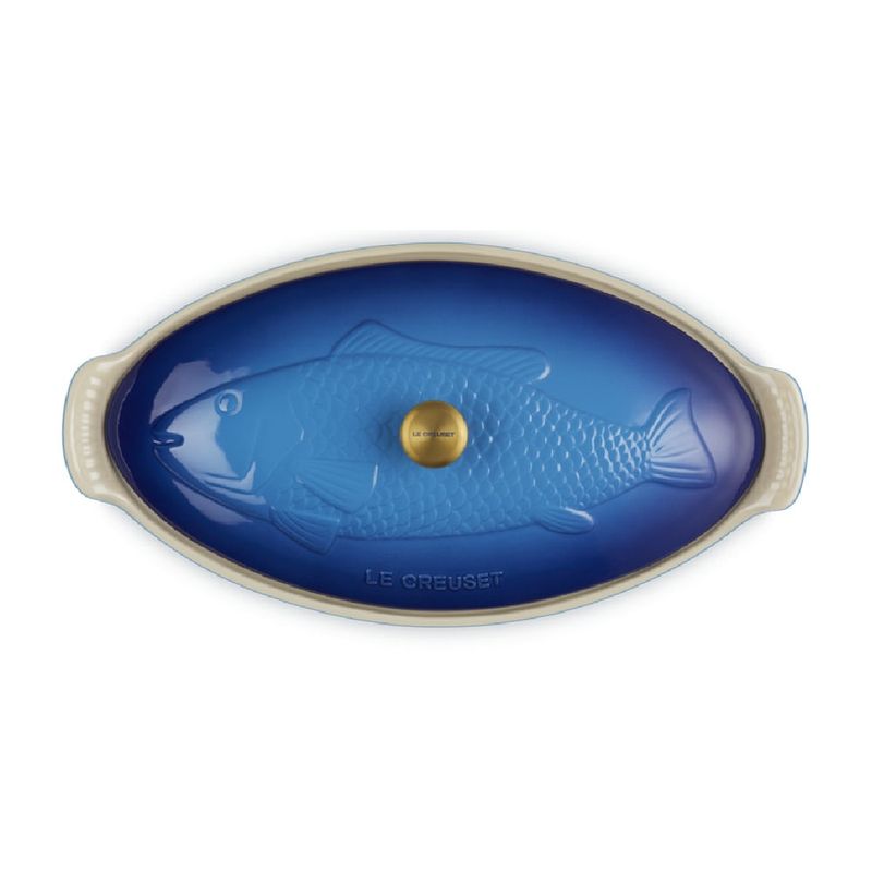 TRAVESSA PARA PEIXE LE CREUSET COM TAMPA 34CM HERITAGE AZURE BLUE 81065602200350