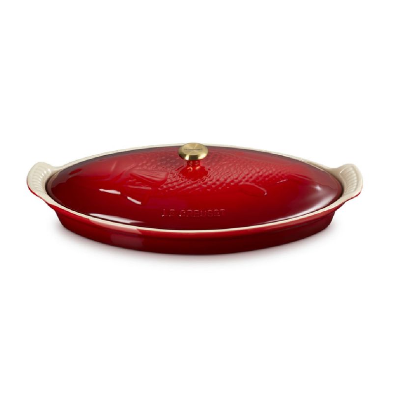 TRAVESSA PARA PEIXE LE CREUSET COM TAMPA 34CM HERITAGE VERMELHO 81065600600350